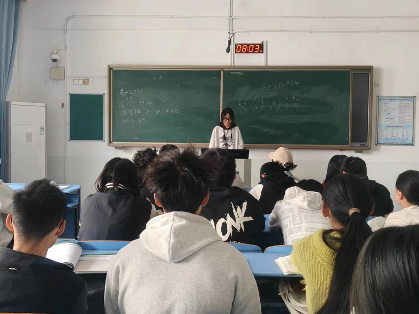 以新生班级为重点。23级新生踏入大学校园不久,对校园诈骗的防范意识还不够强烈,为加强新生的安全教育,强化防诈骗意识,化工学院将武进电诈日报列入大一早自习晨读内容之中,形成常态化管理。各班级每天安排一名同学领读前一天的武进电诈日报内容,加深同学们对身边发生的诈骗案例的记忆,警示大家远离诈骗陷阱,筑牢防范意识。