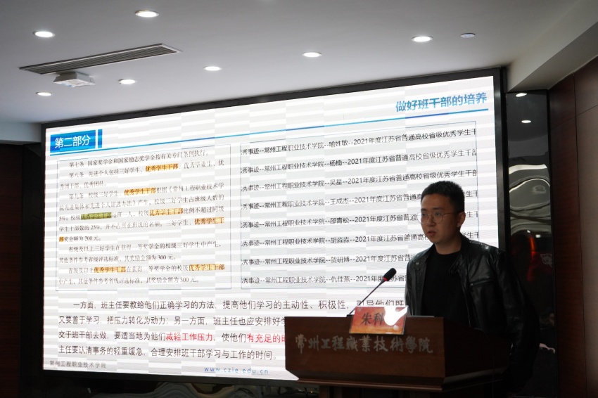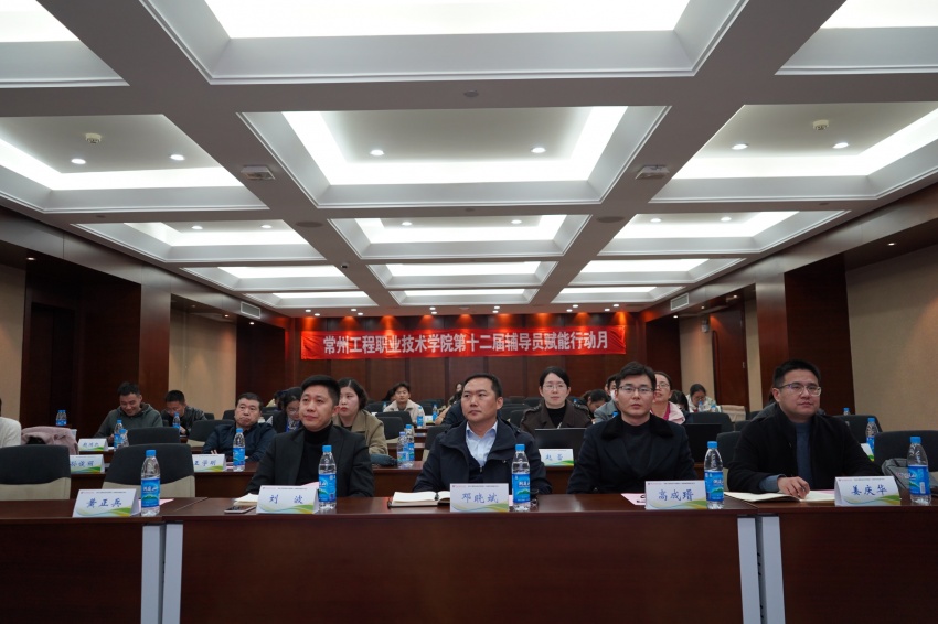 为加强名班主任工作室和辅导员之间的相互沟通交流,全方位提升我校辅导员做好大学生思想政治教育和管理服务工作的能力水平,11月17日下午,学校第十二届辅导员赋能行动月之经验交流活动在图文楼第一会议室举行。江苏城乡建设职业学院党委学工处处长刘波,常州信息职业技术学院软件与大数据学院党总支副书记高成瑨受邀出席活动。校党委学工部部长邓晓斌、副部长姜庆华,各二级学院党总支副书记和全体辅导员参加活动。活动由化工学院党总支副书记周玳宜主持。