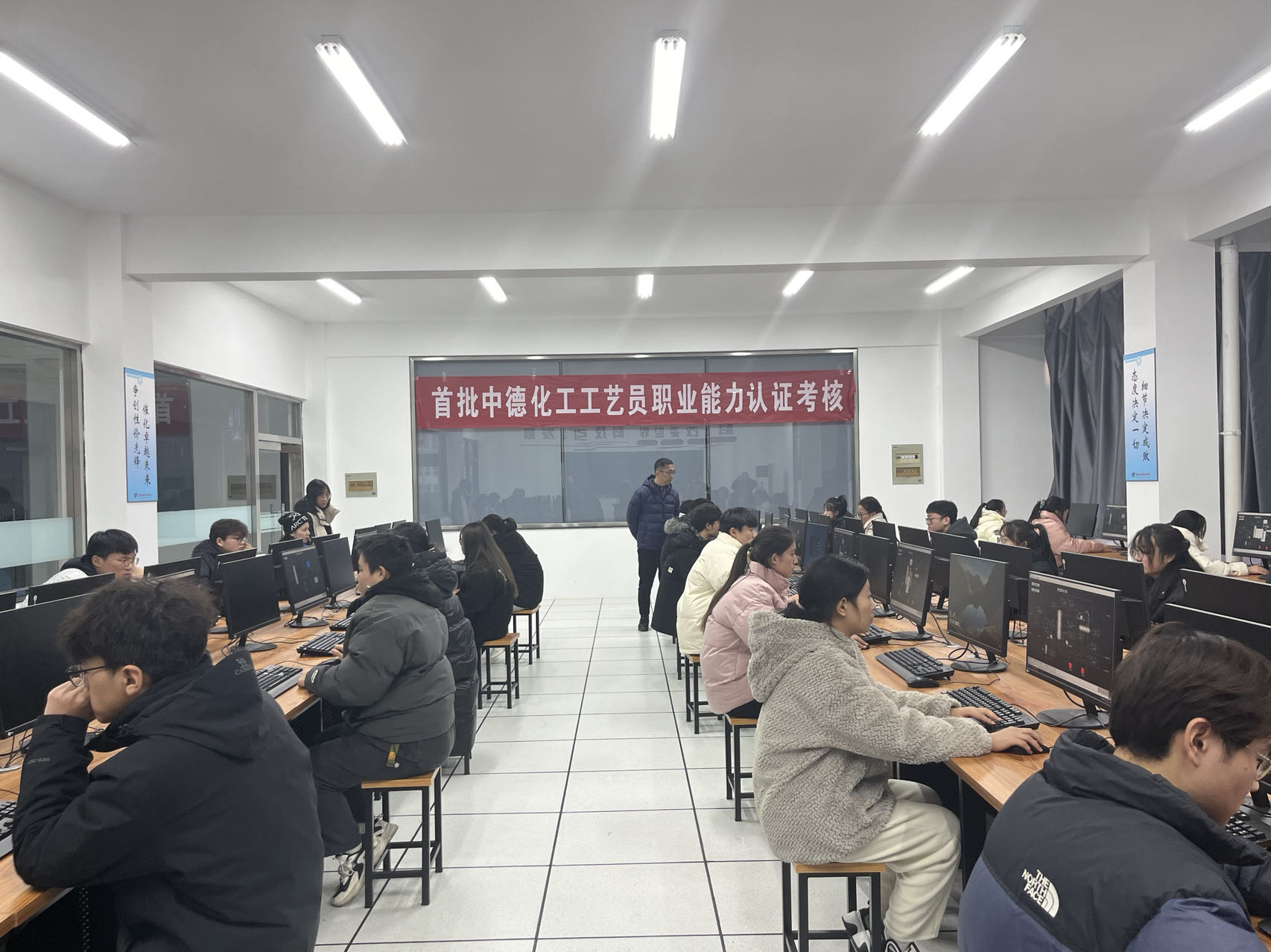 12月23-24日,首批中德化工工艺员职业能力认证考核在我校举行,共有30名化工专业学生报名参加了此次认证考核。学校党委委员、副校长张雪华,化学工业职业技能鉴定指导中心主任沈磊、副主任刘东方,德国科格努斯国际教育集团联合中国区负责人陈丽玮,化工学院院长李东升出席考前动员会并对考核工作进行了现场考察和指导。