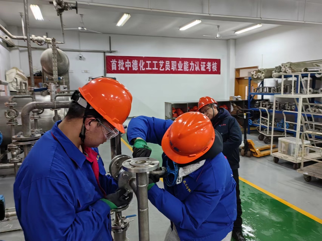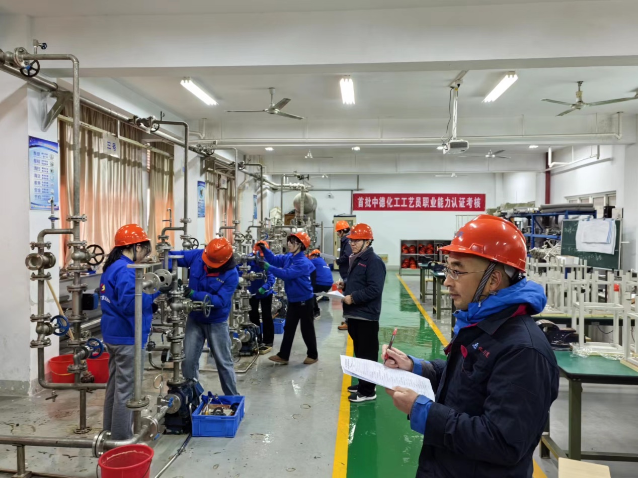 为做好此项工作,2023年8月21-23日,化工学院9名教师参加了由中德双方联合举办的第一届“中德化工工艺员职业能力认证考评员”培训班。通过中德化工职业教育质量标准体系、保障体系构建、德国双元制化工类考试大纲解读、实践考试计划与实施等板块的学习,培养理解和掌握中德化工工艺员职业能力认证的考评员,为后续开展化工国际化人才培养培训奠定基础。