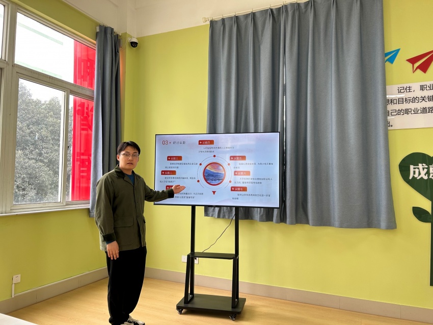随后,入党积极分子们以小组为单位进行研讨,期间学员们各抒己见,对所议话题进行全方面分析,各小组派代表上台发言。成员们分别围绕“预防电信诈骗”、“做好职业规划”等与当代青年现状息息相关的议题进行了阐述。
