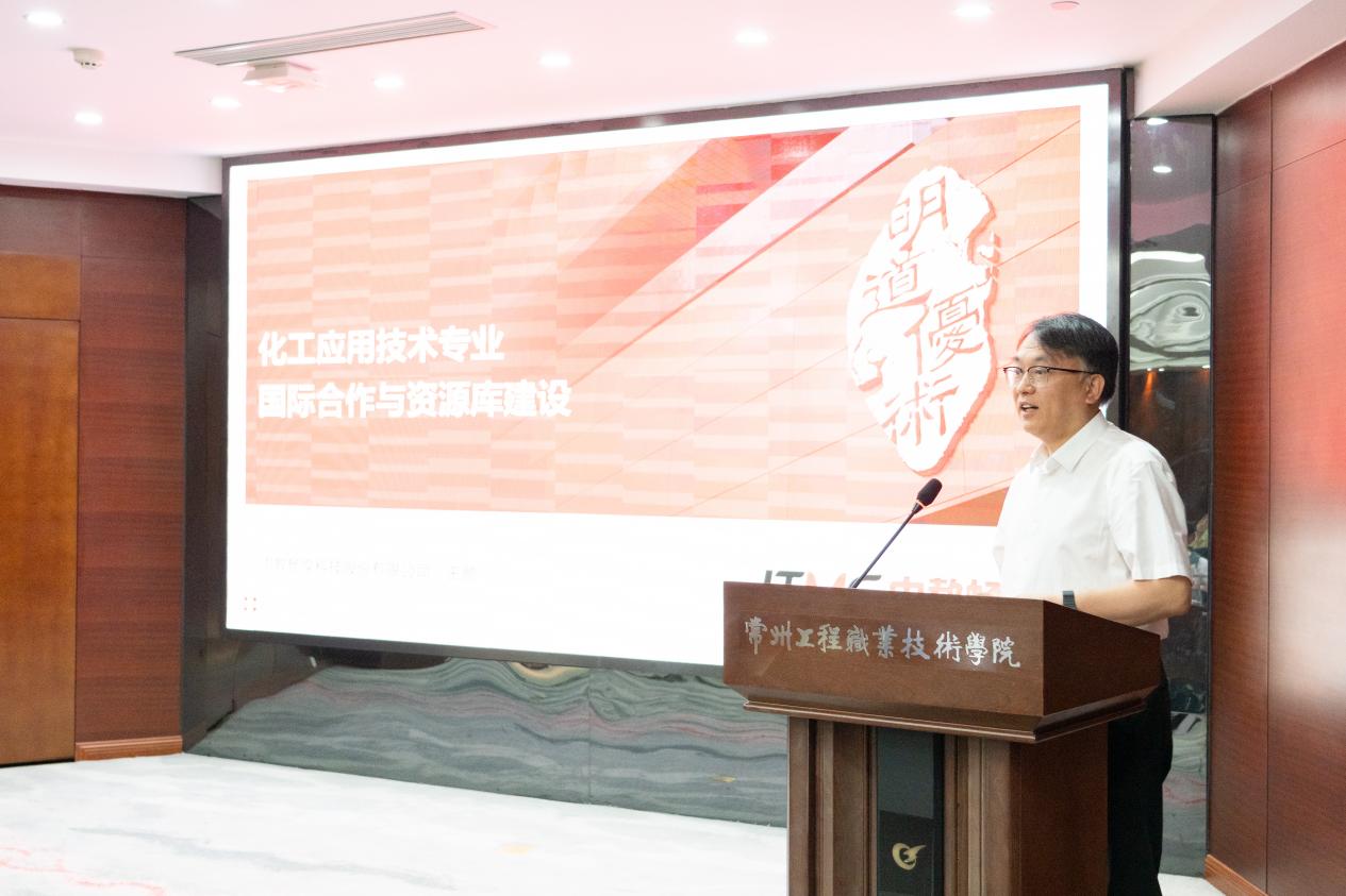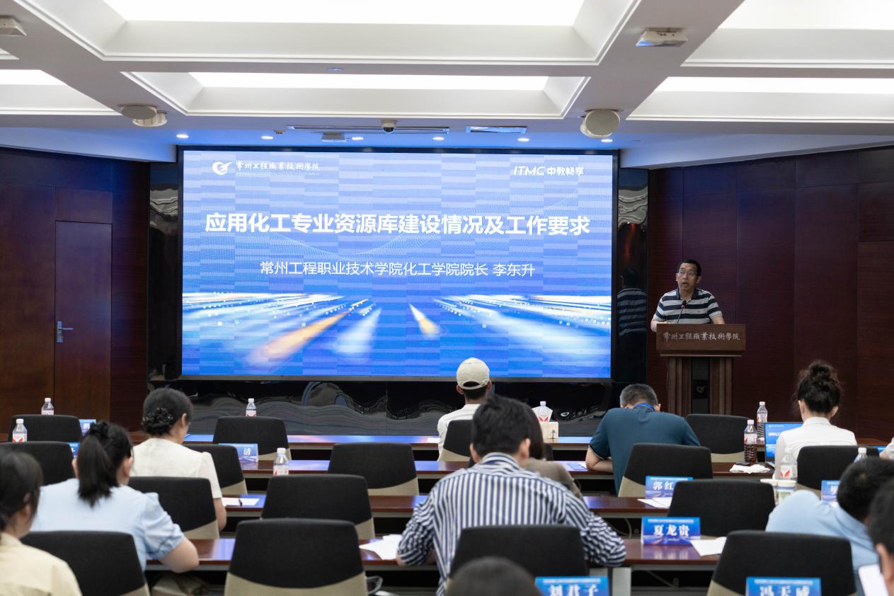 化工学院院长李东升详细介绍了应用化工专业资源库建设情况及工作要求,展示了学校在应用化工专业教学资源建设方面的先进理念与实践经验,明确了下一步的工作重点与任务分工。