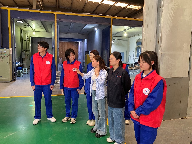 企业安全管理人员夏工带领师生进入生产车间,现场讲解生产流程,引导大家查找生产过程中设备操作存在的安全隐患,并详细介绍应对方法,全流程展示安全生产规范。帮助师生直观了解企业安全生产规范与风险防范要点。活动现场,理论学习与实践操作紧密结合,直观感受企业安全管理体系,实现理论知识与企业实践的双向赋能。